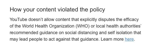 On the one hand, this is one of the problems with algorithm programs...they can't tell when something is being posted ironically or not. On the other hand, I'd rather YouTube err on the side of viewers not grasping that the crap being spouted in this clip is incorrect, so fair enough.