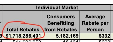 Today, however, the actual, official 2019 MLR rebate reports have finally been released (they're much later than usual due to a combination of the COVID pandemic and the Risk Corridor payment lawsuit settlement), and check it out:
