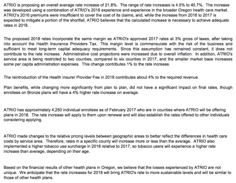 I've been assuming a ballpark average of 40% being due to general Trump/GOP/CSR uncertainty as a general rule of thumb. I'm sure it ranges widely from carrier to carrier, and I don't expect many other carriers to be quite so candid and specific about this issue, but BCBSNC has over half a million enrollees on the individual market (on + off exchange). That's 2.8% of the entire indy market all by themselves. Food for thought.