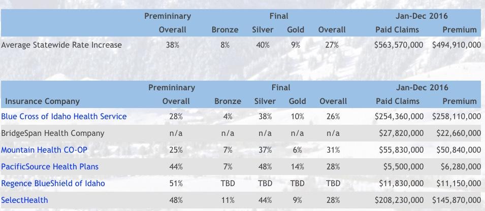With all that in mind, here's where things stand as of 5/14/17: With 4 states plugged in (CT, MD, VT & VA) representing less than 6% of the total population, carriers are requesting a pretty unpleasant 32.5% average rate hike.