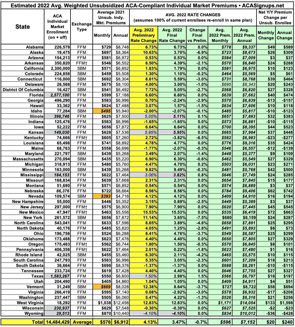Overall, it looks like the average unsubsidized rate increase is around 3.5% nationally.