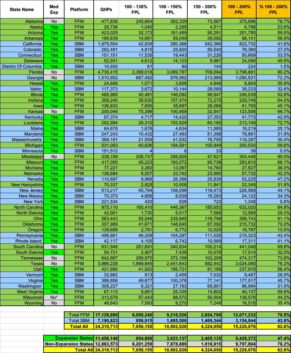 That's over 15.2 million people total, and with extremely rare exceptions, just about every one of them should be enrolled in a Silver CSR plan, aka "Secret Platinum", since the extremely generous Cost Sharing Reduction (CSR) assistance in the 100 - 200% FPL range turns Silver plans (which normally have a ~70% Actuarial Value) into either an 87% or 94% AV plan...effectively Platinum (90% AV)).