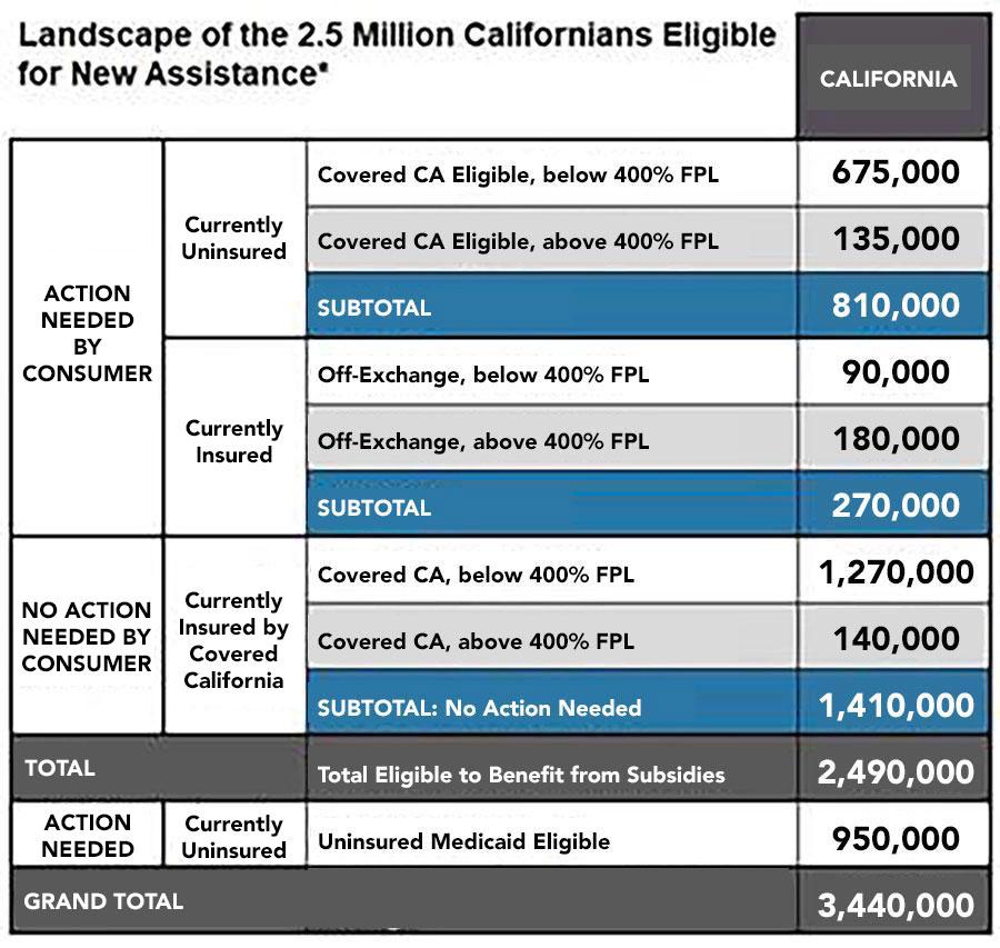 - The new law will help an estimated 2.5 million Californians, including the uninsured and people enrolled directly through a health insurance carrier, by injecting $3 billion into the state’s economy.