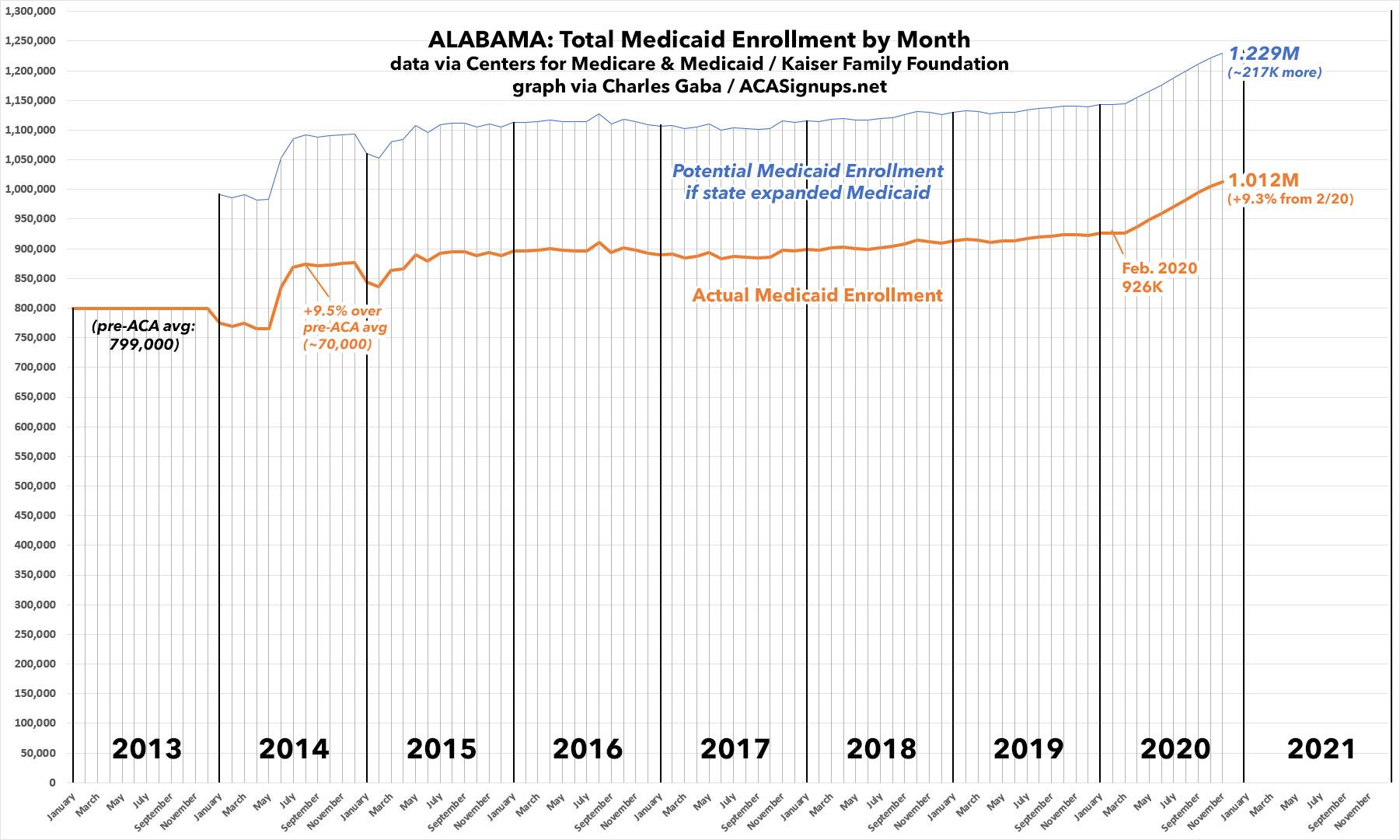 Alabama: Medicaid enrollment up over 9.3% since COVID hit; could be up over 200K more if they expanded Medicaid
