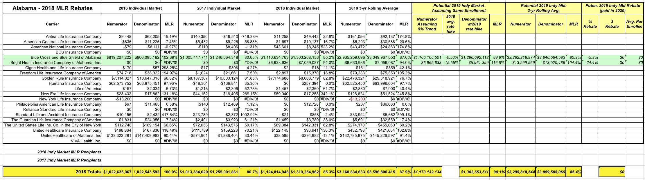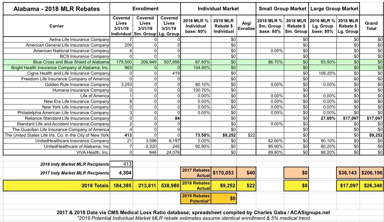 Exclusive! Alabama: 2018 MLR Rebate Payments (& potential 2019 rebates)