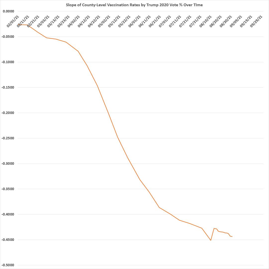 Weekly Update: U.S. #COVID19 vaccination levels by COUNTY & Partisan Lean