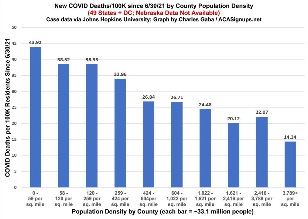 Here the difference is even more stark: COVID deaths since June in the most-vaccinated counties in America have been running less than one fourth the rate of the least-vaccinated counties.