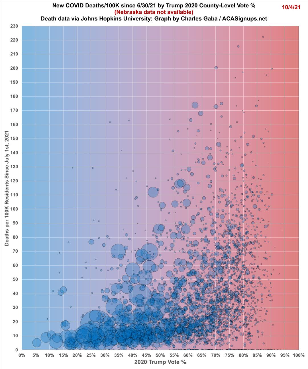 • These graphs only include the 50 U.S. states + DC (well, 49 in the case of the death rate graph). U.S. territories aren't included since they don't vote for President in the general election.