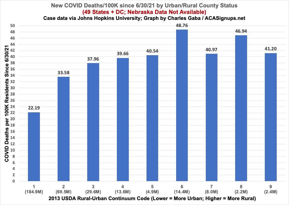 In other words, the factors Beckham points to were already at play when the pandemic began, yet it wasn't until the third wave last fall (I think) when the death toll in rural areas began to outnumber urban areas.
