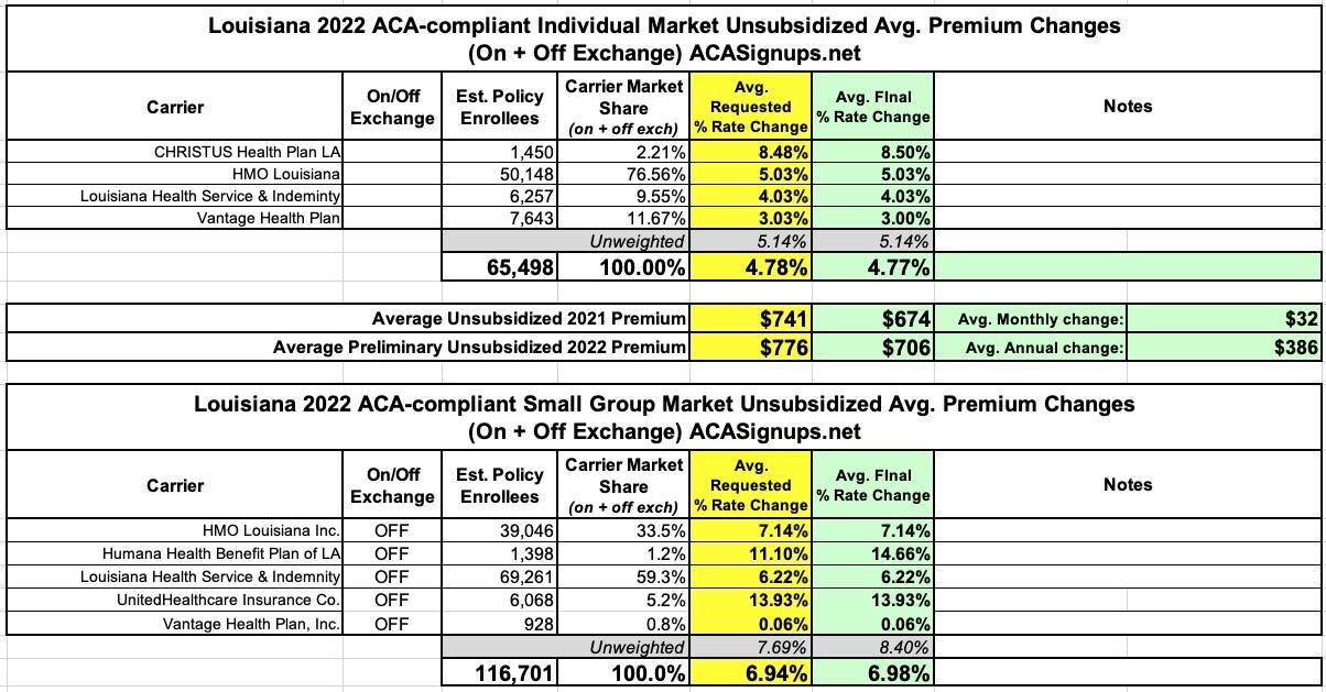 *APPROVED* Avg. 2022 #ACA Rate Changeapalooza! AK, CA, GA, HI, IL, KS, LA, MA, MS, MO, NE, NH, TX, WY
