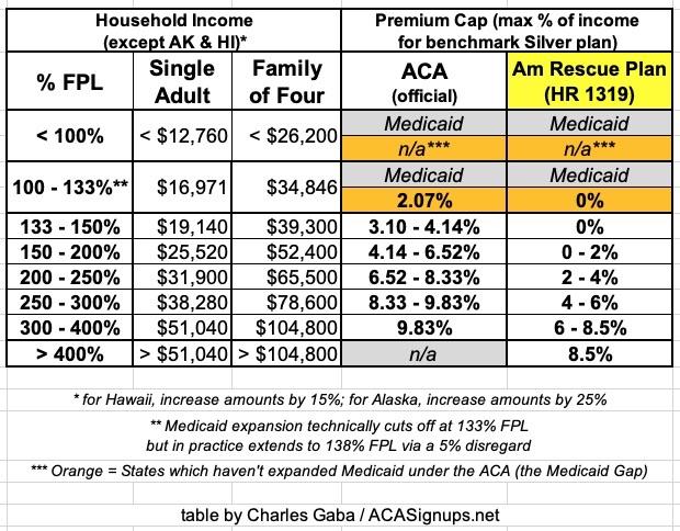 In this version I'm using the actual Advanced Premium Tax Credit (APTC) table under the American Rescue Plan, and I'm cutting out all references to the other two tables to avoid confusion.