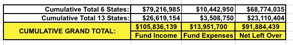 That should be a grand total of around $79.2 million across these six states as of December of this year.