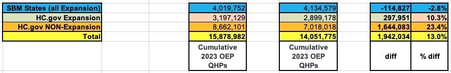 Here's some further points of interest from my analysis of the semi-final 2023 ACA Open Enrollment report earlier today: