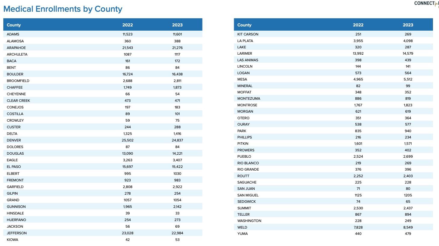 201,758 Coloradans enrolled in a health insurance plan through Connect for Health Colorado’s marketplace during the Open Enrollment Period for 2023 coverage.