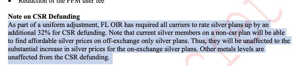 It looks like Florida has been quietly doing what other states like New Mexico and Texas are doing: Not just giving a general "Silver Loading" regulation but actually specifying a particular "load" to be tacked on to Silver plans. I checked the 2022 and 2023 filings for both carriers and saw similar "CSR loads" (31% and 33% respectively).