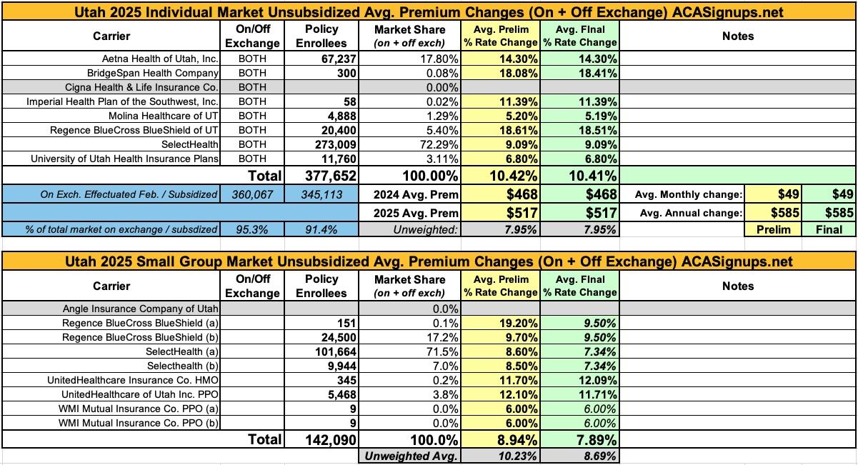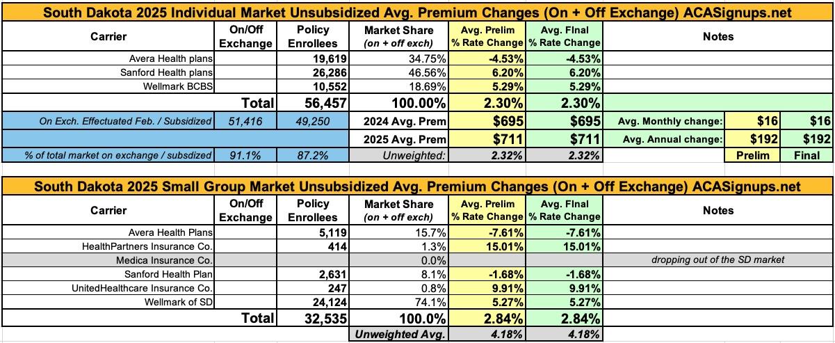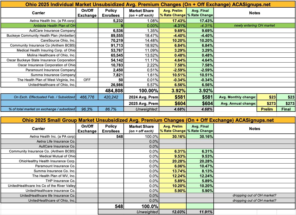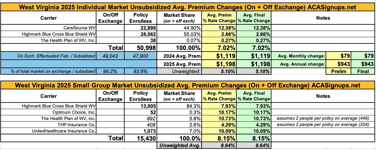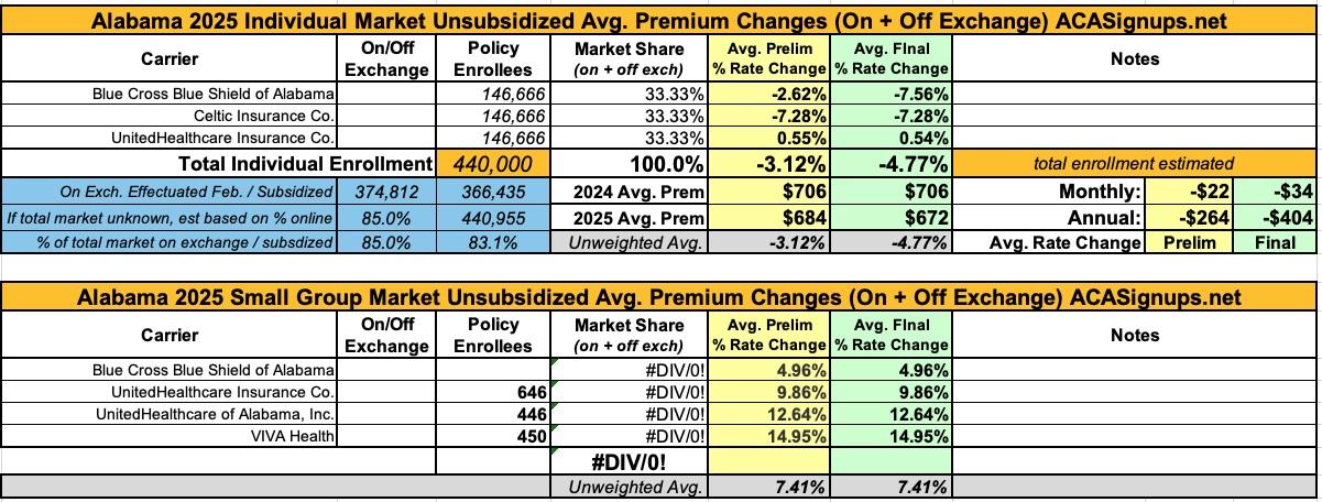 Oh yeah...here's the final 2025 rate changes for unsubsidized ACA policies for the remaining states, if anyone cares.