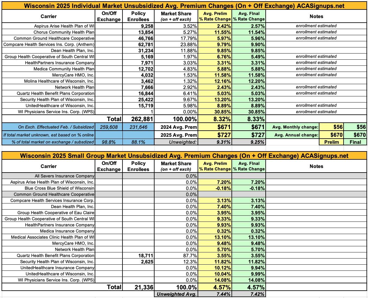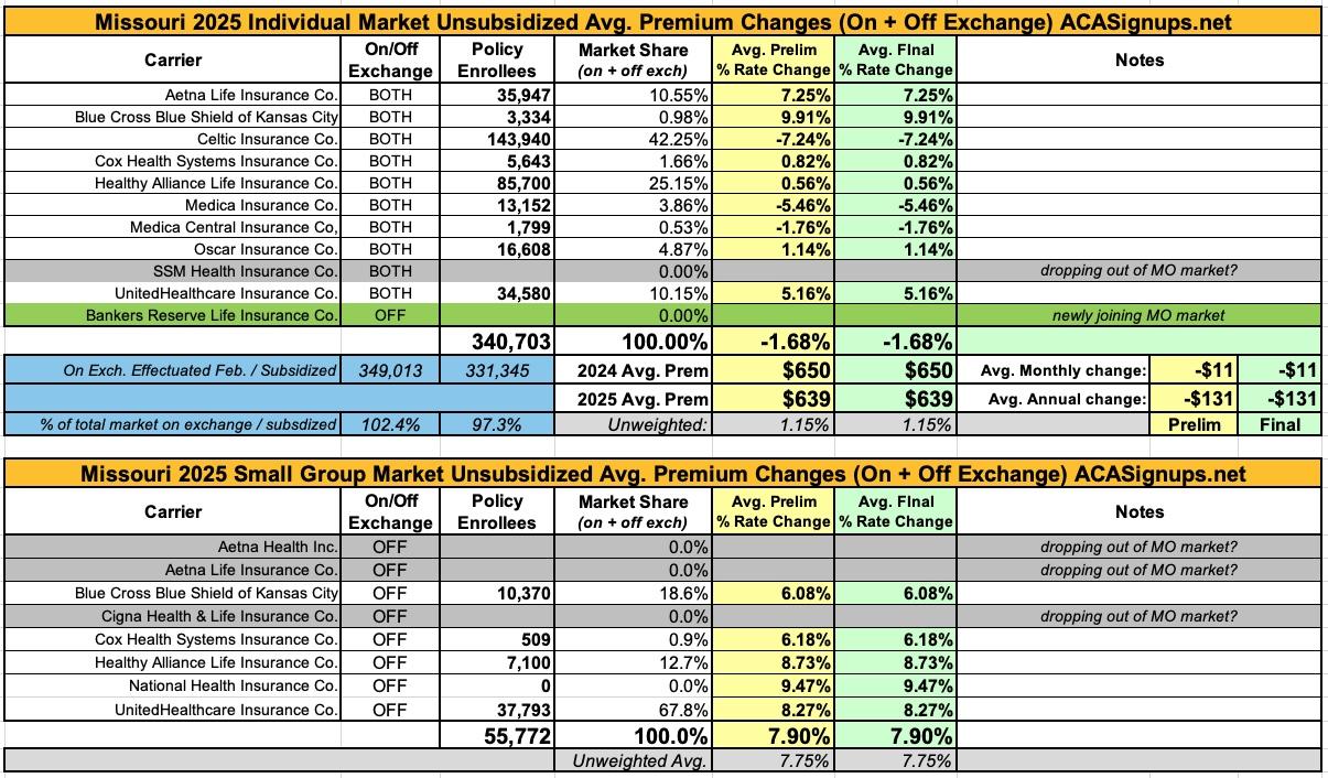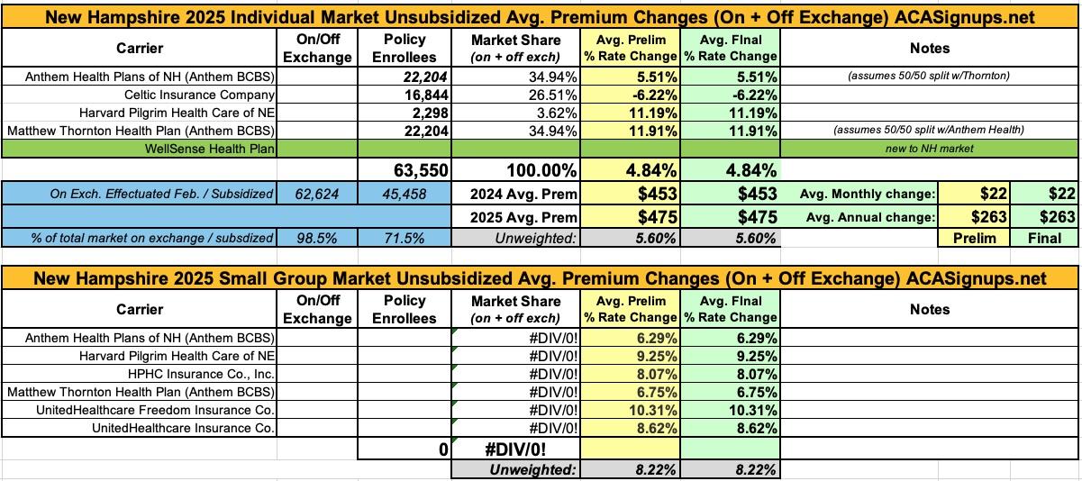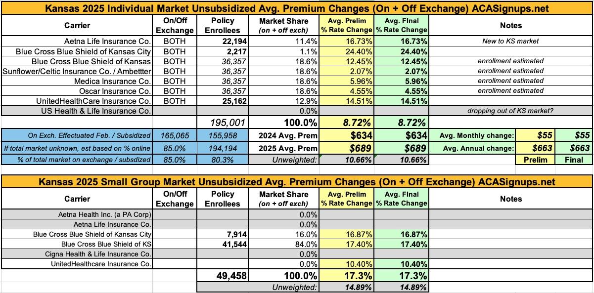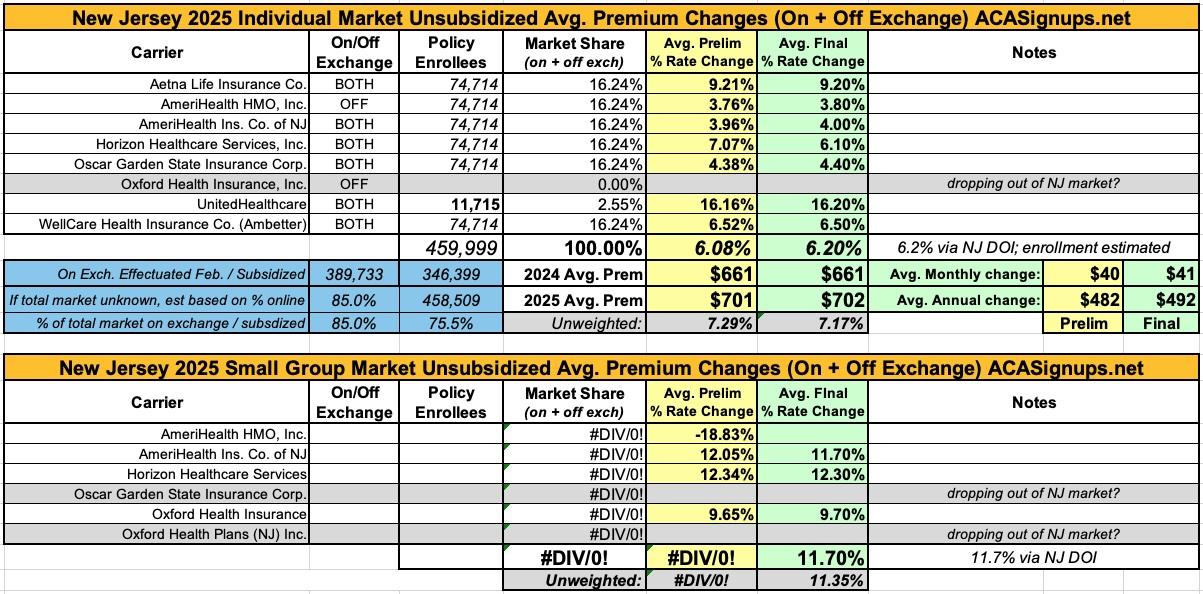 Oh yeah...here's the final 2025 rate changes for unsubsidized ACA policies for the remaining states, if anyone cares.