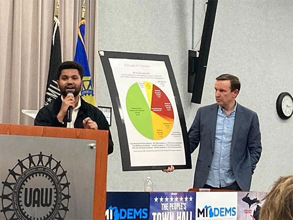 (Sidebar: Here's U.S. Rep. Maxwell Frost & U.S. Sen. Chris Murphy holding up & talking about one of my charts...in this case it's the one for MI-10, where GOP Rep. John James abandoned his district months ago ahead of his 3rd attempt at a statewide win, this time for Governor):