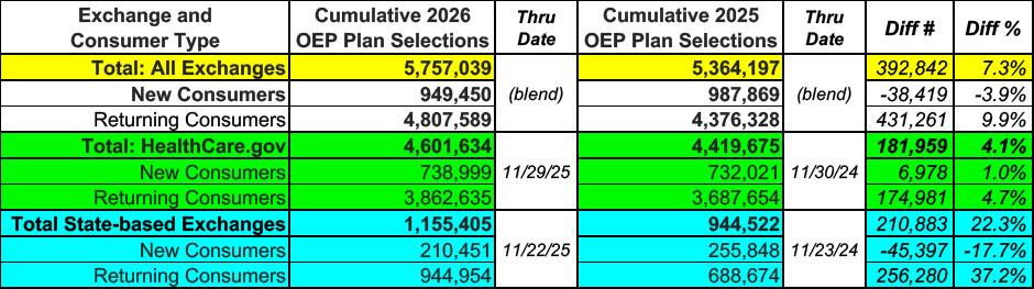 Breaking: CMS posts claimed 2026 Open Enrollment: 5.76M QHPs, up ~11% y/y so far
