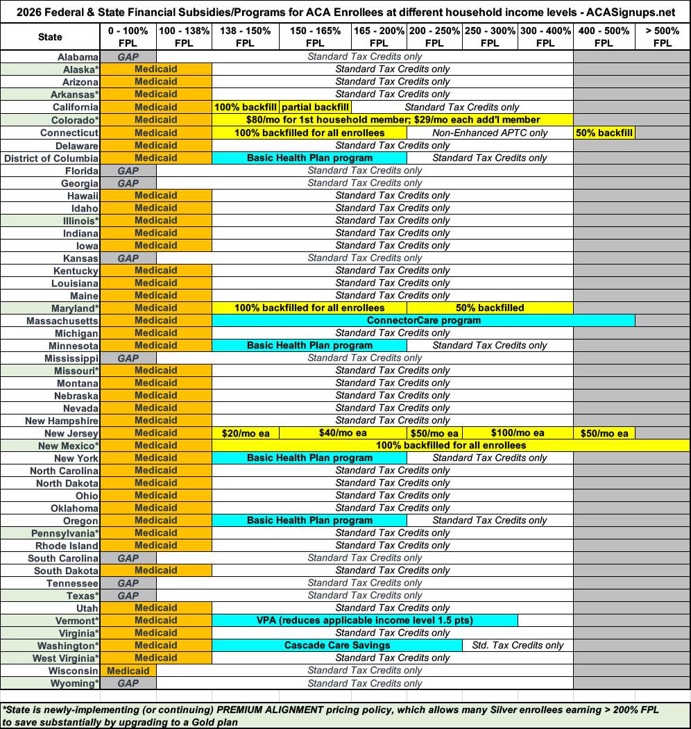 There are several other states which also have their own state-based subsidies this year (or special programs like Basic Health Plans in DC/MN/NY/OR, ConnectorCare in Massachusetts and the VT Premium Savings program in Vermont), but like New Jersey, most of these are just continuing their existing programs, so I don't think there will be much net premium change impact relative to 2025.