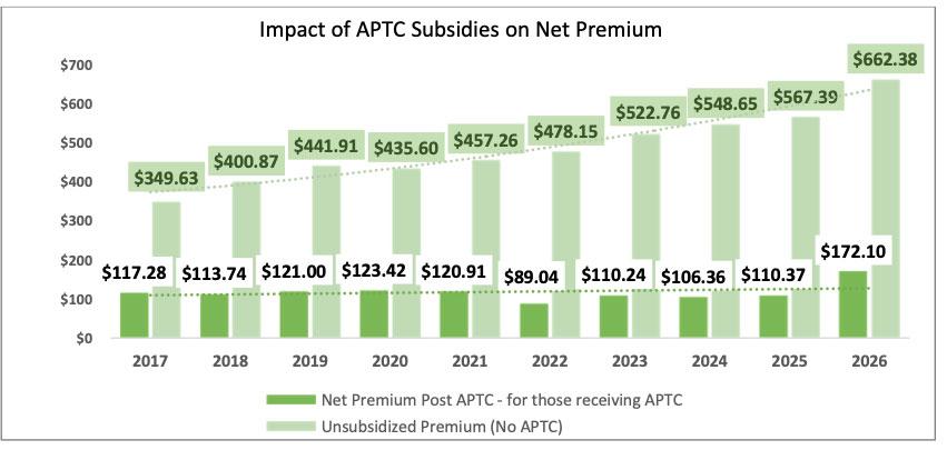 From 2021 through 2025, historically high levels of financial assistance — available through the American Rescue Plan Act (ARPA, March 2021) and extended by the Inflation Reduction Act (August 2022) — made coverage through HSRI more affordable than ever. The enhanced premium tax credits expired on December 31 due to lack of federal action. Simultaneously, premiums rose more sharply than usual at least in part as insurers across the country, Rhode Island being no exception, anticipated shifts in the uninsured and underinsured rates in their markets.