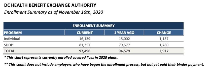 Ther's not a whole lot of interest here, but it's worth noting that DC's effectuated enrollment in November was 7.6% higher than a year ago. This is again likely due to the extended "open" COVID-19 Special Enrollment Period in 2020: