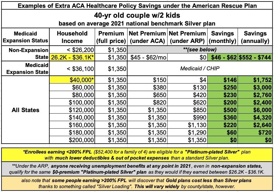 So, the American Rescue Plan includes two important provisions whch I've been fighting for for years: #KillTheCliff and #UpTheSubs. The only downside is that, for now at least, these ACA enhancements are only included for two years (including 2021...the beefed-up & expanded subsidies are retroactive to January 1st of this year).