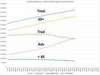 Every month for years now, the Centers for Medicare & Medicare Services (CMS) has published a monthly press release with a breakout of total Medicare, Medicaid & CHIP enrollment; the most recent one was posted in late February, and ran through November 2022.