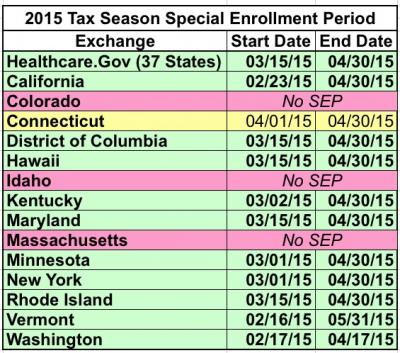 OK...technically speaking, 6 states had already kicked off their Tax Filing Season Special Enrollment Period starting as early as February 17th (Washington State), but for 40 states (plus DC) states, the "encore" edition of 2015 ACA Enrollment officially began today. Connecticut doesn't start theirs for another 2 weeks, and 3 states (CO, ID & MA) are not offering a "tax filing season" SEP. However, those three, like every state, still have the "normal" off-season SEP for people who have significant life changes such as getting married, divorced, giving birth, adopting a child, losing their other coverage or moving to a new state.