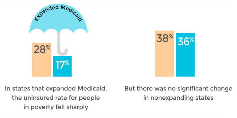 It's not terribly surprising that expansion states saw their uninsured rate drop more than non-expansion states, but this seems like too much of a difference (11% vs. 2%)...until you remember that this only applies to people in poverty...that is to say, only the Medicaid/CHIP data is relevant here, as noted by Jeffrey Young in his Huffington Post piece.