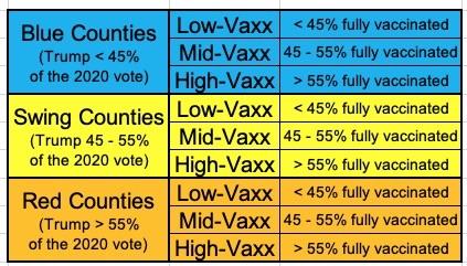 I also noted that, to no great surprise, the makeup of those 146 "Blue Low-Vaxx" counties is pretty telling: