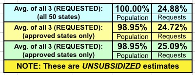 UPDATE 09/05/16: I've updated the requested averages in Arizona and New Hampshire, while adding the approved rates in Florida and Maine, so I now have approved rates for 31% of the population:
