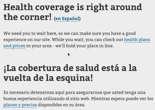 Just a quick hit: There's now just under 7 hours to go before the December 15th deadline for January 1st coverage (I'm assuming the actual deadline is midnight Pacific time?), and it looks like we've indeed reached the server capacity limits of HealthCare.Gov; it placed me on the "Waiting Room" screen for a solid 10 minutes before redirecting me to the account login page.