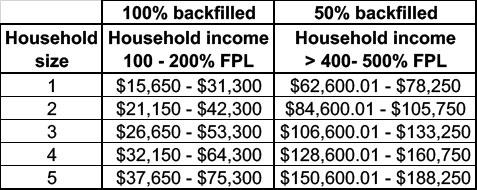 The bottom line is that Connecticut enrollees who earn between 100 - 200% of the Federal Poverty Level (FPL) will have 100% of the lost federal tax credits backfilled, while enrollees who earn between 400 - 500% FPL will have half (50%) of their lost subsidies covered: